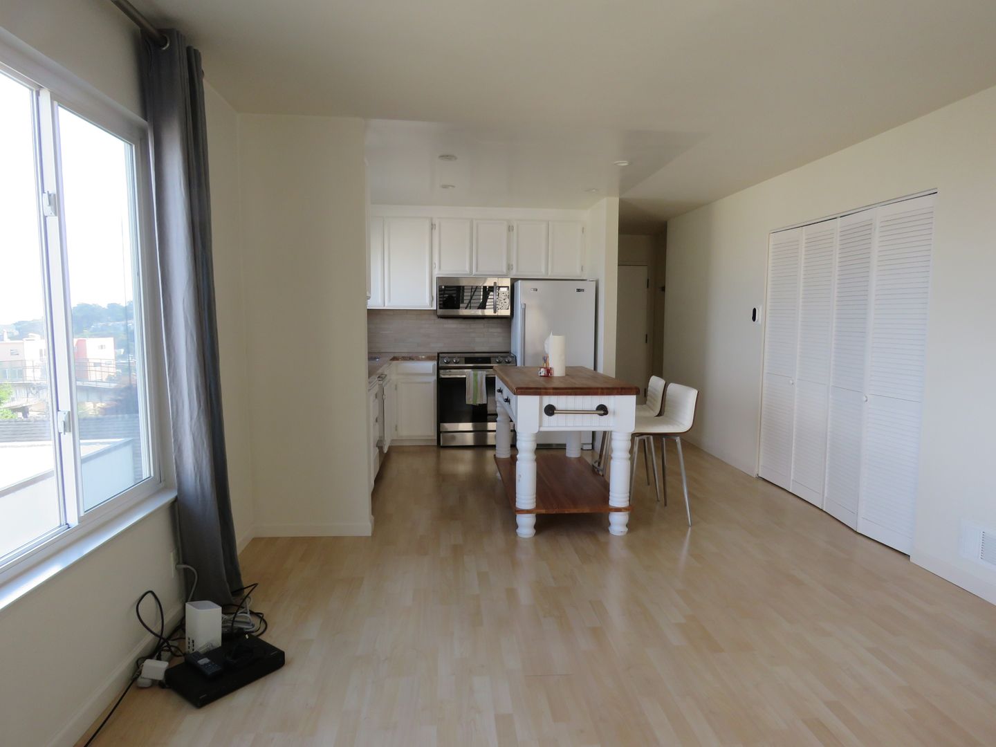 This beautiful condo is hidden away at 11 Argent. It is a small street that is only accessed by foot. Once you enter the property behind the fence you have a lovely front shared yard. It has a fig tree and faux grass and a seating area. As you enter the lobby there is a door that takes you to the garage that has access from a secret entrance from the street! The unit has one car spot in the garage and it is the prime spot. You can store a bicycle in the garage too. As you head up a flight of stairs you see the laundry room. There is a washer and dryer that are free to use (no coins or apps) that is shared with all 4 condos. Now we enter into the beautiful one bedroom, one bath condo. The views are breathtaking in all the rooms. The kitchen has an island that works great for storage, prep and eating meals. There are plenty of windows that bring in lots of natural light. The condo has custom designed closet in the living room and bedroom. The floors are luxury laminated flooring throughout. The bathroom has shower over tub and nice size vanity. The living room is open to the kitchen and spacious. There is a counter bar in the kitchen that is multi functionable. The bedroom has room for a king bed! This unit won't last long. To view please call or text, Joan @ 415-471-0419. No smoking. No pets