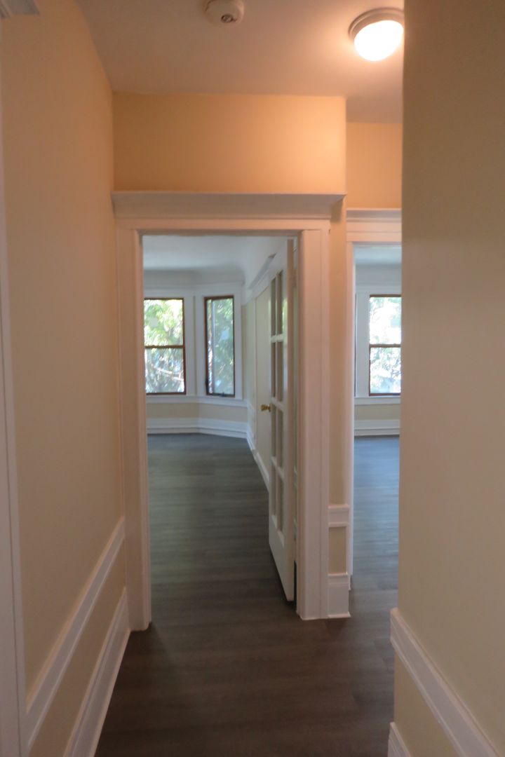 This west-facing unit is located on the top floor of a 12 unit building on Fulton near Masonic. The unit features a large living room with a gas heater, high ceilings and new woodgrain flooring. The kitchen has been completely remodeled with new cabinets, quartz countertops, an under-mount sink modern faucet and stainless appliances (gas stove and refrigerator). The bathroom features a brand new vanity with quartz counter and a shower over tub with quartz surround. The huge bedroom has a gigantic walk in closet and bay windows, and the hall has a large coat closet for additional storage. There is brand new woodgrain flooring throughout the living spaces.