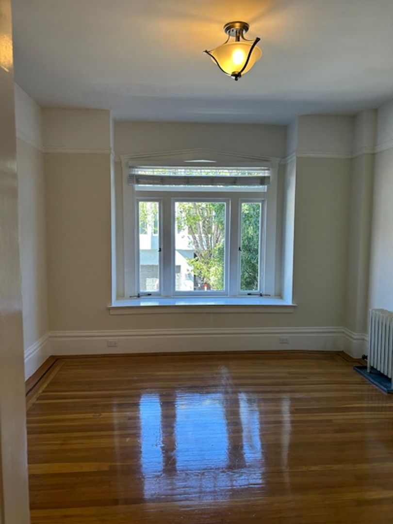 This studio unit is located in the heart of San Francisco. Beautiful weather, convenient location to shops, entertainment, restaurants and much more. This is a lovely studio unit in the Castro District. The unit has hardwood floors, big closet, large kitchen with built-ins and a good size living area. The bathroom has shower over tub. This unit is facing 17th Street - one floor up from the lobby. Great seating ledge in front of the large windows in the living area and the kitchen. Back door in kitchen that goes down to the shared washer/dryers. There is a storage locker available for an extra $100.00 per month. Shared back yard for you to enjoy the sun or clouds! There is NO PARKING with this unit.
