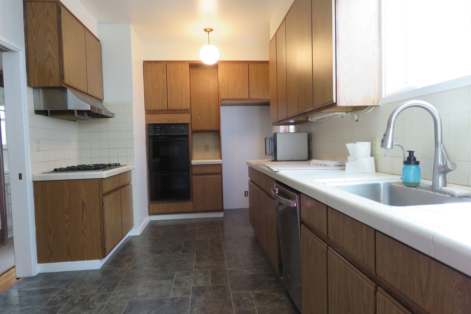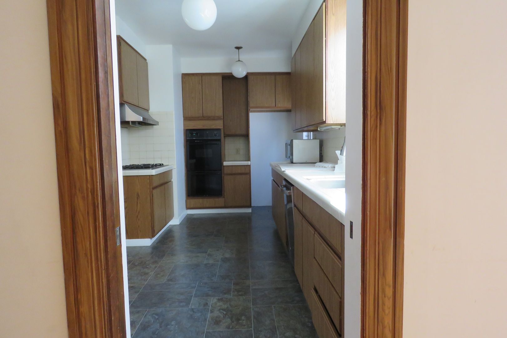 Kitchen that features - Double Ovens- Fidgerator - Gas Stove - Dishwasher - Lots of Cabinets - Back Door that leads to Garage